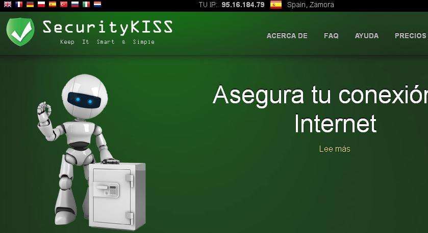 - SecurityKiss: podemos escoger servidores ubicados en Estados Unidos, Reino Unido, Alemania o Francia. Límite diario de 300 MB. Basta con instalar el programa, no hace falta identificarse.